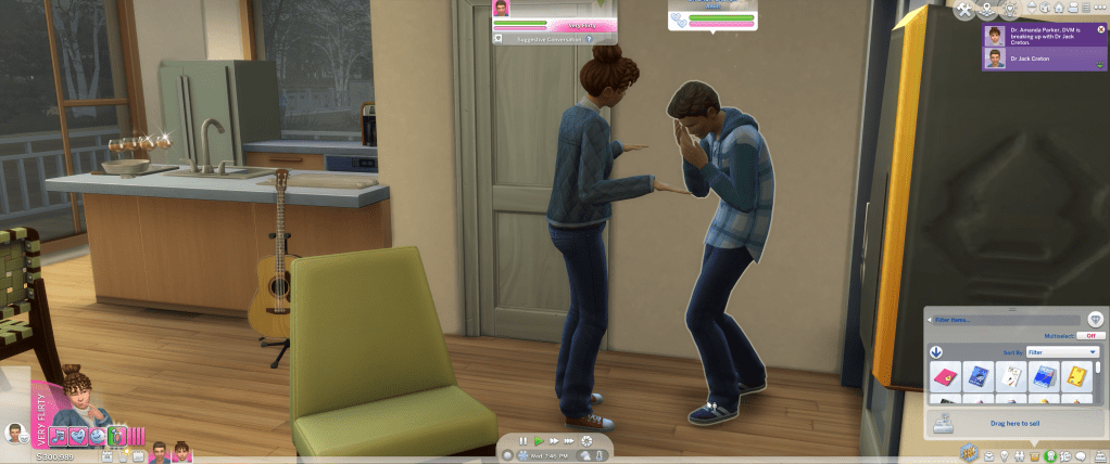 When I restarted the game, Jonah’s urn was in the family inventory but that’s when I got an idea. Because Jonah was in the military, he could have died at work trying to save others. Certainly, it would fit in with his personality. Jonah was a character who had the good trait, the brave trait and the loyal trait. It fit him perfectly. So, I wrote his death as such. Also, I wanted to see Jayda grow through the grief process as a widow and single mother. With the new Growing Together EP and dynamics, it was interesting to see these events play out, and I did make sure to caption it and shoot images to use for later.