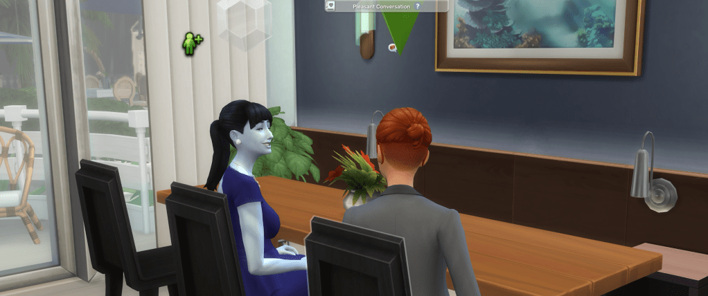 In game, it’s impossible to get Sims to walk alongside one another. I hope at one point this does change. So, I made the conversation happen before Carrie heads back to her home. Before she leaves, Drake asks her if she would like to go out with him tomorrow night. She tells him she can’t go out on night due to her schedule on Monday, but she can meet him for lunch. Drake agrees and she asks him to come to her home to pick her up. Drake is also surprised to learn that Carrie is in college and refers to her as a genius. Carrie smiles and responds in a clear Henford acccent, “I wouldn’t go that far.”