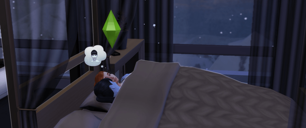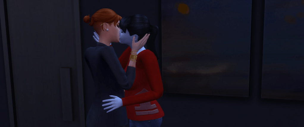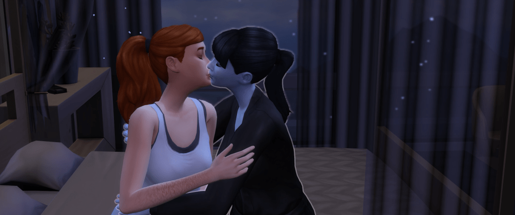 Originally, I used the Bed Makeout mod from the Pancake1, for this scene but I didn’t like the way the animation looked, even with freezing the frame and fading out, rather than displaying the emotion the scene required. For this scene The Sims4 Lovestruck EP was crucial for the final scene, with Nina and Addie cuddling in bed, about to woohoo and spend the night together. It blends perfectly, you get the idea of what’s happening next without having to show it.
