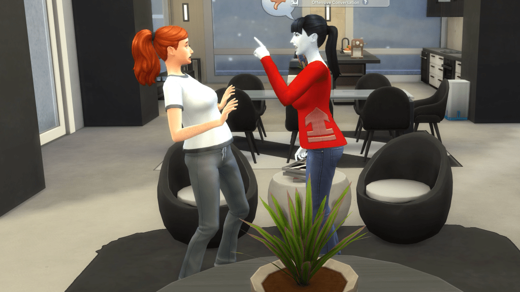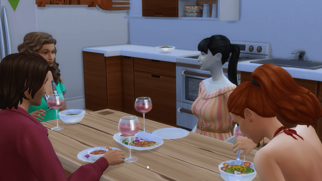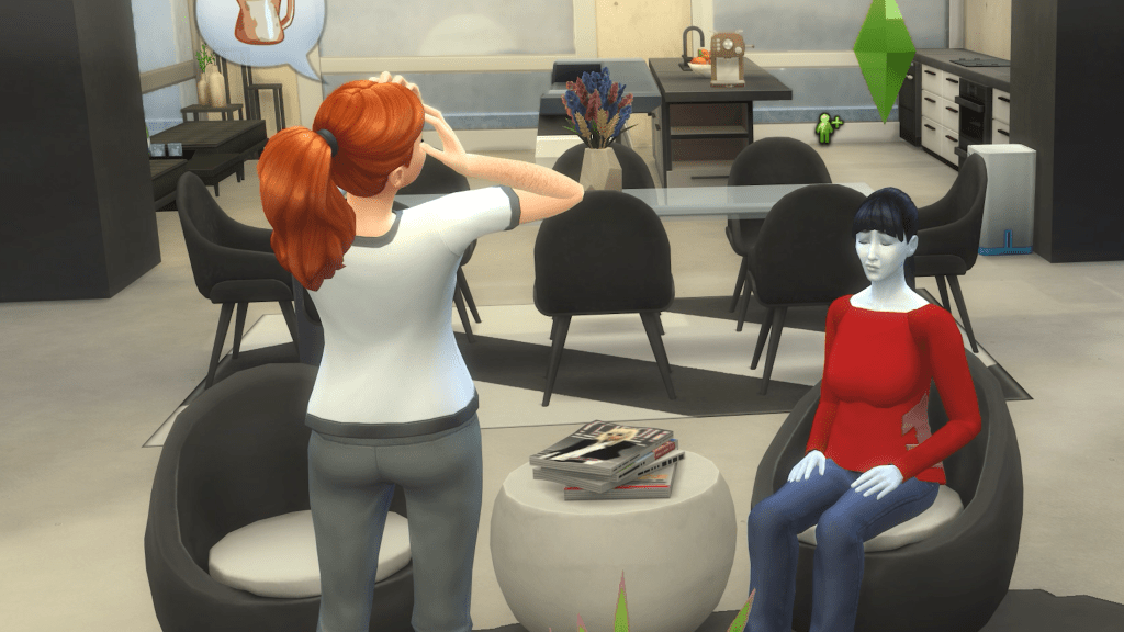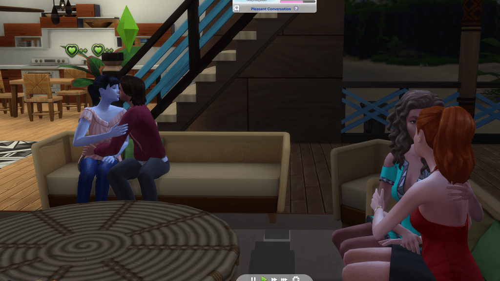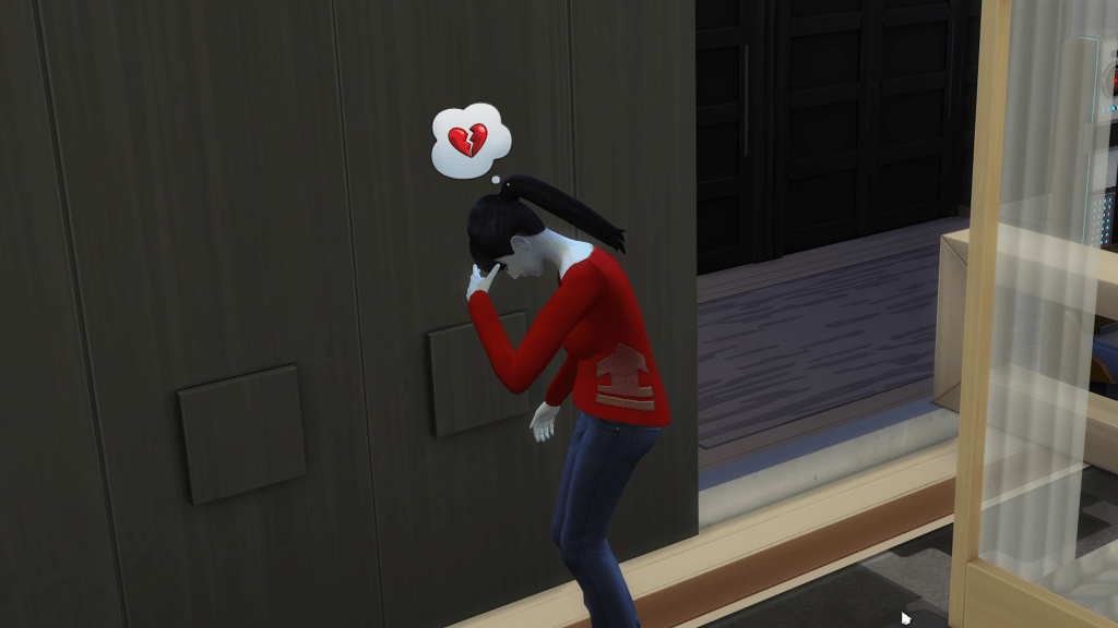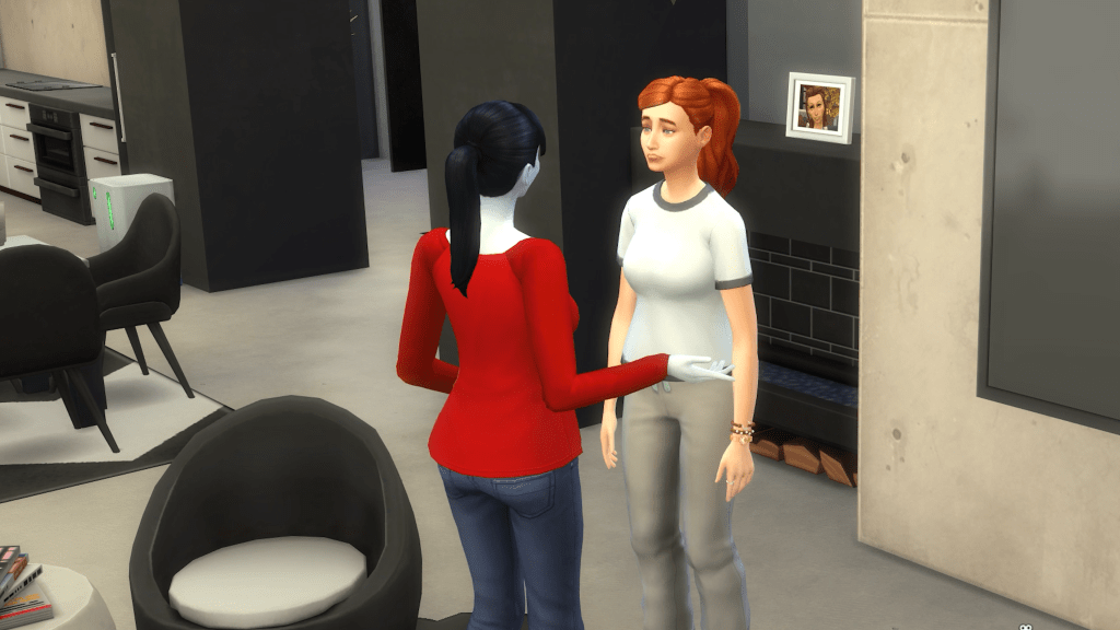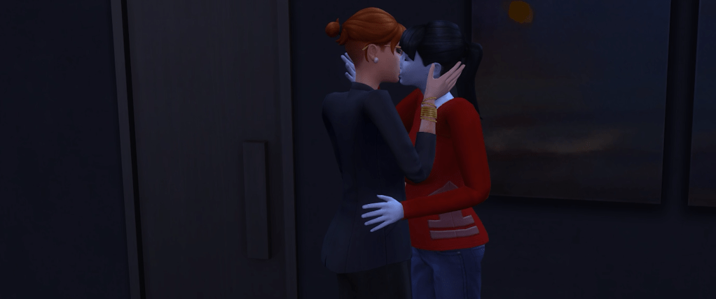 From Addie’s perspective, she’s a professional, and isn’t one to cross the line ever. She’s also never had a situation like this before where she’s felt such a strong attraction for another Sim but is afraid to act on it. As time goes on, Addie’s feelings go beyond attraction for Nina.