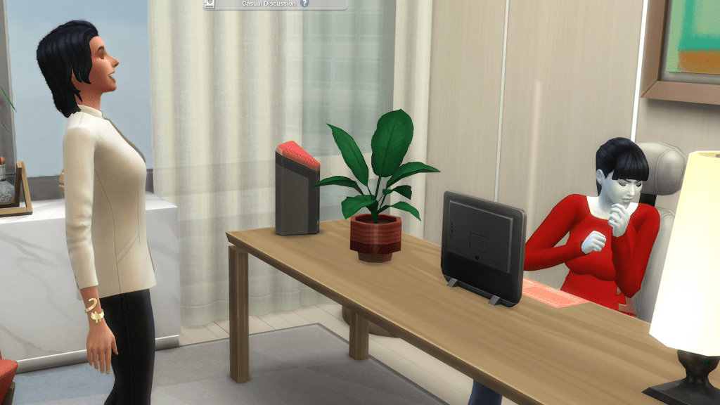 As Nina is about to leave, Carrie asks her to stay a while and talk. Nina is delighted to spend time with her daughter and decides to stay and chat with Carrie.