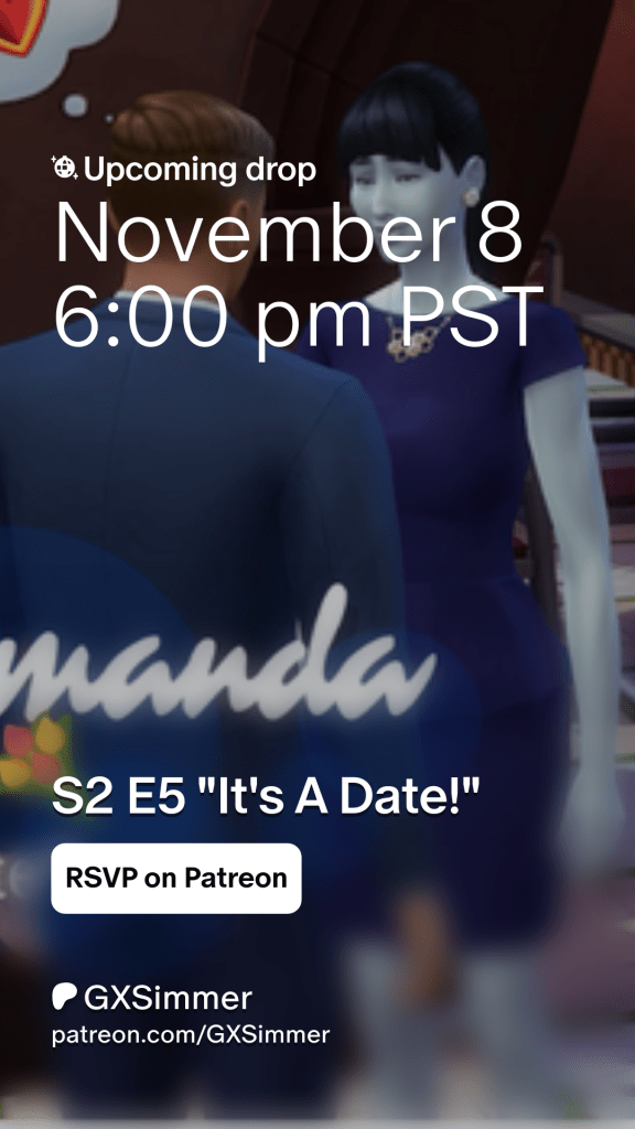 This episode was written about three months before The Sims4 released Lovestruck. One of the options in the expansion pack is a “Get to Know Each Other” Event. So, I worked that into E4 while filming the episode.