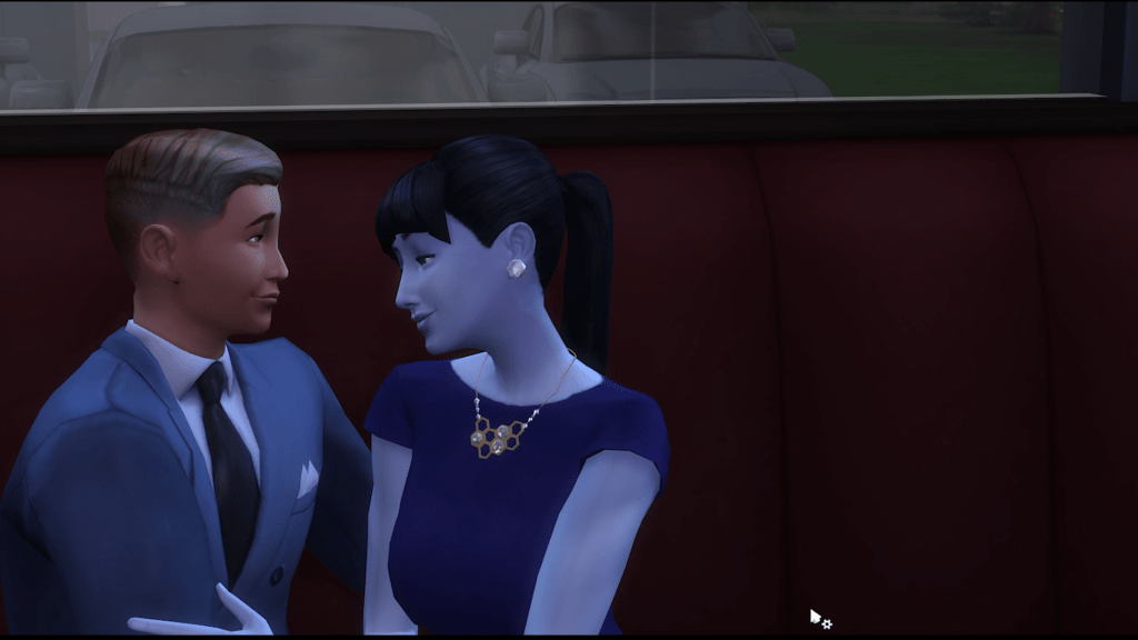 Nina is surprised, but happy, and allows him to kiss her again. This is a new experience for her. It’s not just because she’s with a man. It’s because he treats her so much better than others have. As they continue to enjoy their make-out in the restaurant, a server asks if there will be anything else. They only want the check.