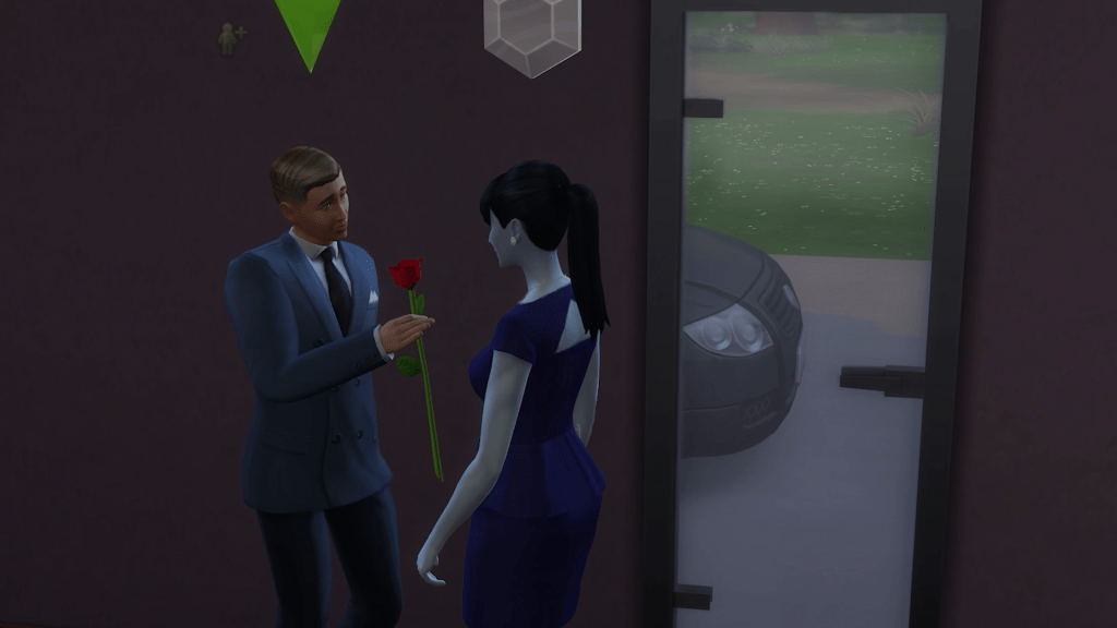 As Nina prepares to go down the elevator, Sterling waits by the back entrance with his car. He again presents her with a single red rose, and escorts her to a car with a personal driver. Looks like he’s gone all out tonight!