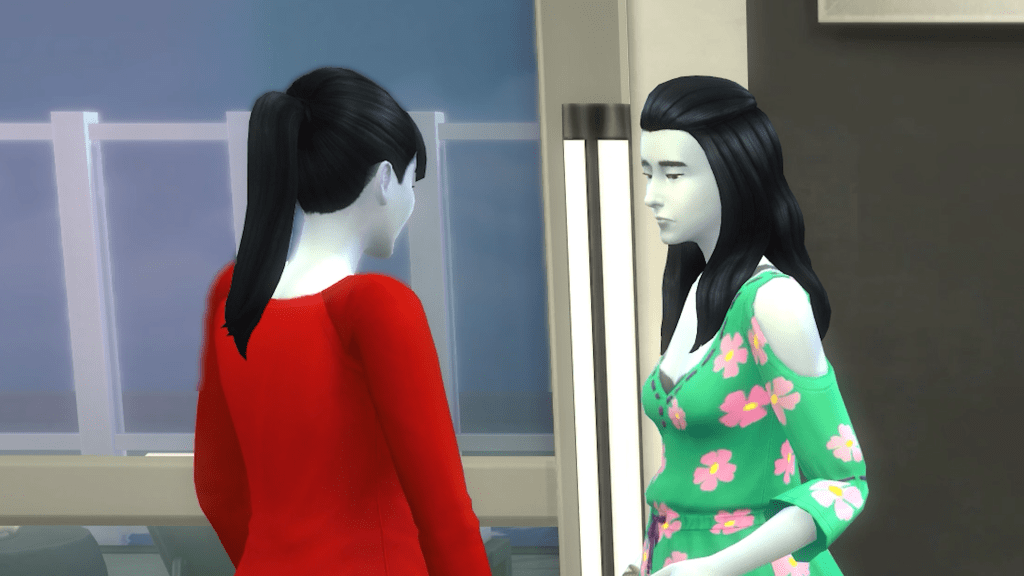 Nina knows she can do nothing tonight to ease her daughters’ fears. Nonetheless, they can sit back and enjoy the evening together. Besides, that pizza by Littlbowbub is too good to waste! I agree that it is.